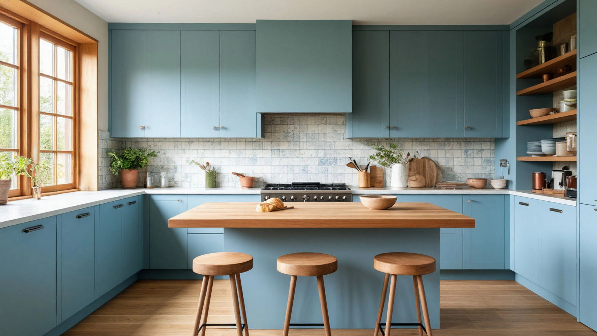 Главная идея кухни "Мацура" — в балансе. Здесь всё подчинено равновесию формы, цвета и пространства. Голубой оттенок фасадов словно растворяется в воздухе, создавая ощущение простора и лёгкости. Он не холодный, не отстранённый — наоборот, тёплый, мягкий и живой, как весеннее небо над водой. Именно такой цвет способен сделать кухню не просто красивой, а по-настоящему атмосферной. Он создаёт идеальный фон для природных акцентов: тёплого дерева, светлого камня, тонких линий чёрной фурнитуры. В сочетании с натуральными текстурами голубой обретает глубину, становится почти философским — спокойным, уравновешенным, как сама идея джапанди.