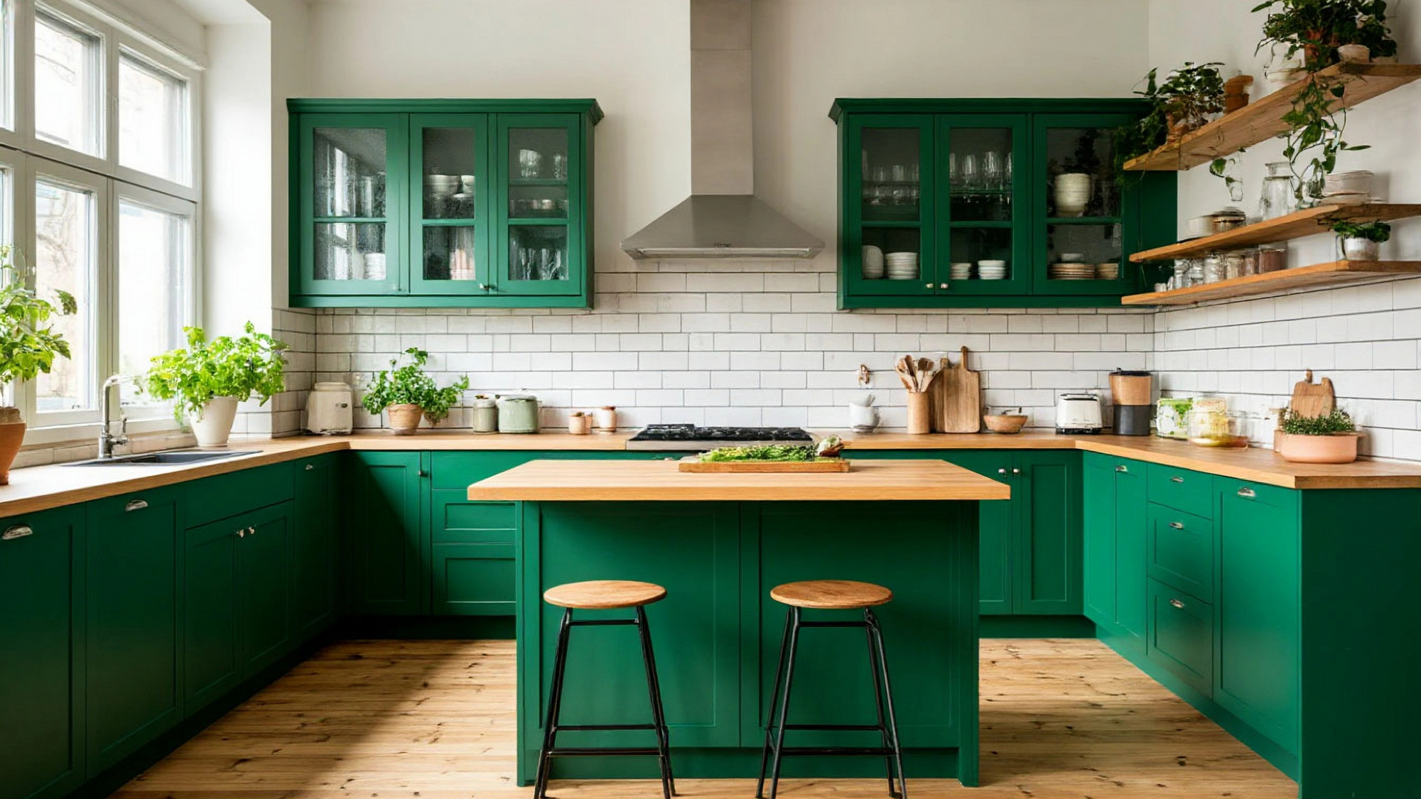 Кухня в зеленом цвете "Саген" превращает процесс готовки в удовольствие. Рабочие поверхности, шкафы и выдвижные ящики расположены эргономично, что позволяет быстро и удобно готовить даже сложные блюда. Организация пространства способствует порядку: каждая вещь имеет своё место, кухонные принадлежности не создают беспорядок, а рабочая зона остаётся свободной и функциональной.