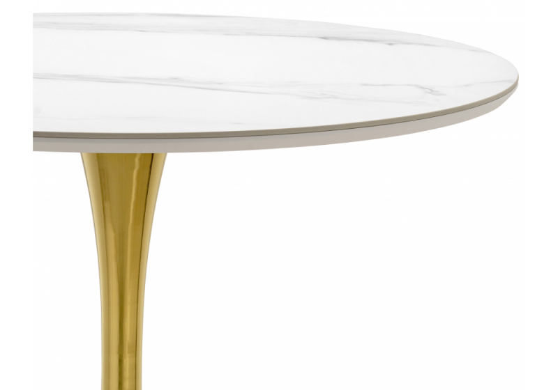 Керамический стол Тулип 90х73 белый мрамор / золото (90x74).