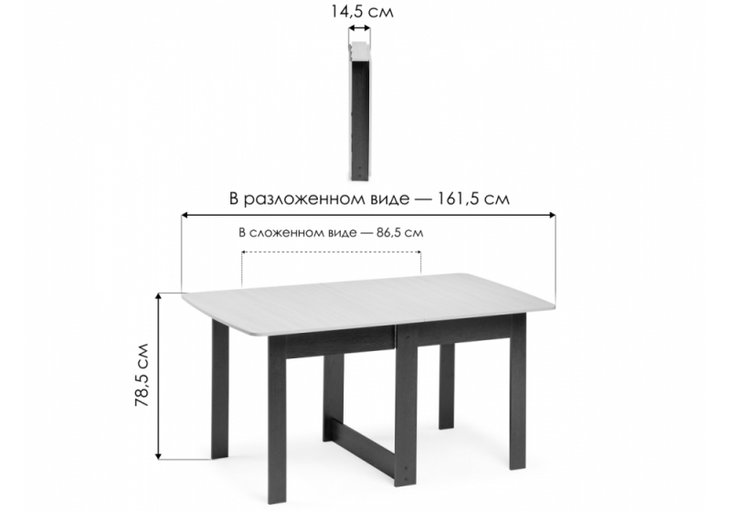 Длина стола в разложенном виде: 161,5 см.