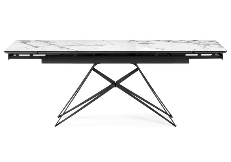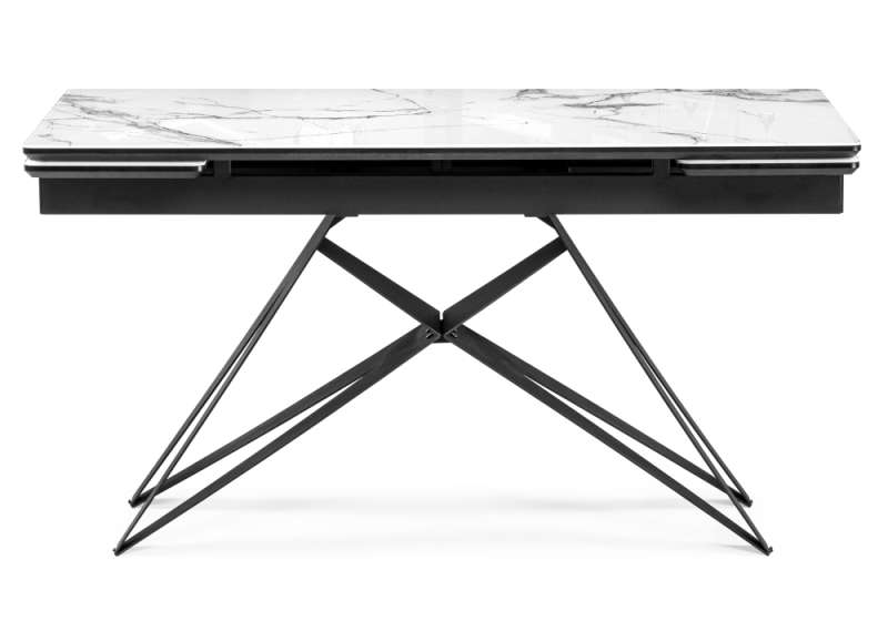 Стол стеклянный Блэкберн 140(200)х80х75 белый мрамор / черный (80x75)